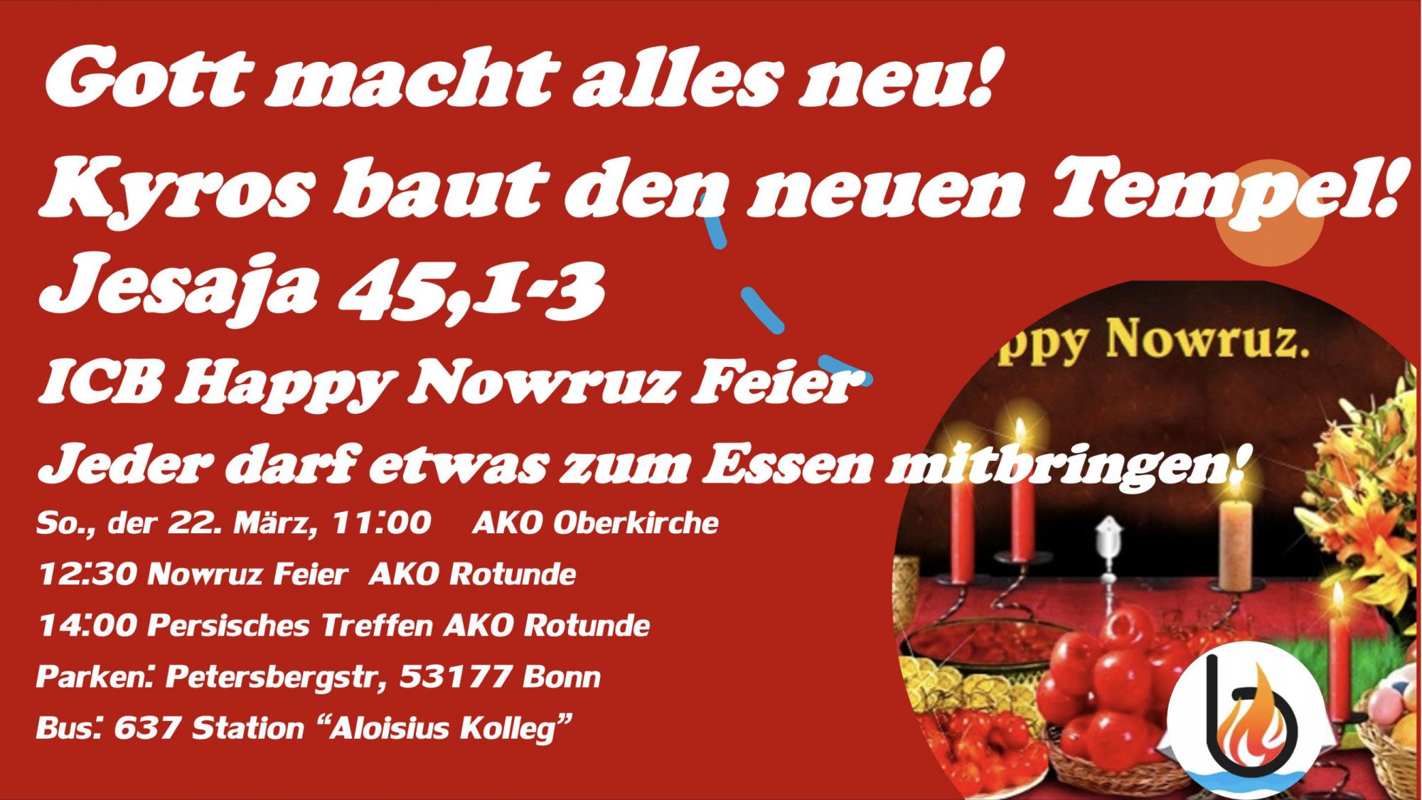 Einladung zur ICB Happy Nowruz Feier am 22.03. um 11 Uhrvon adminan Veröffentlicht am Februar 9, 2026